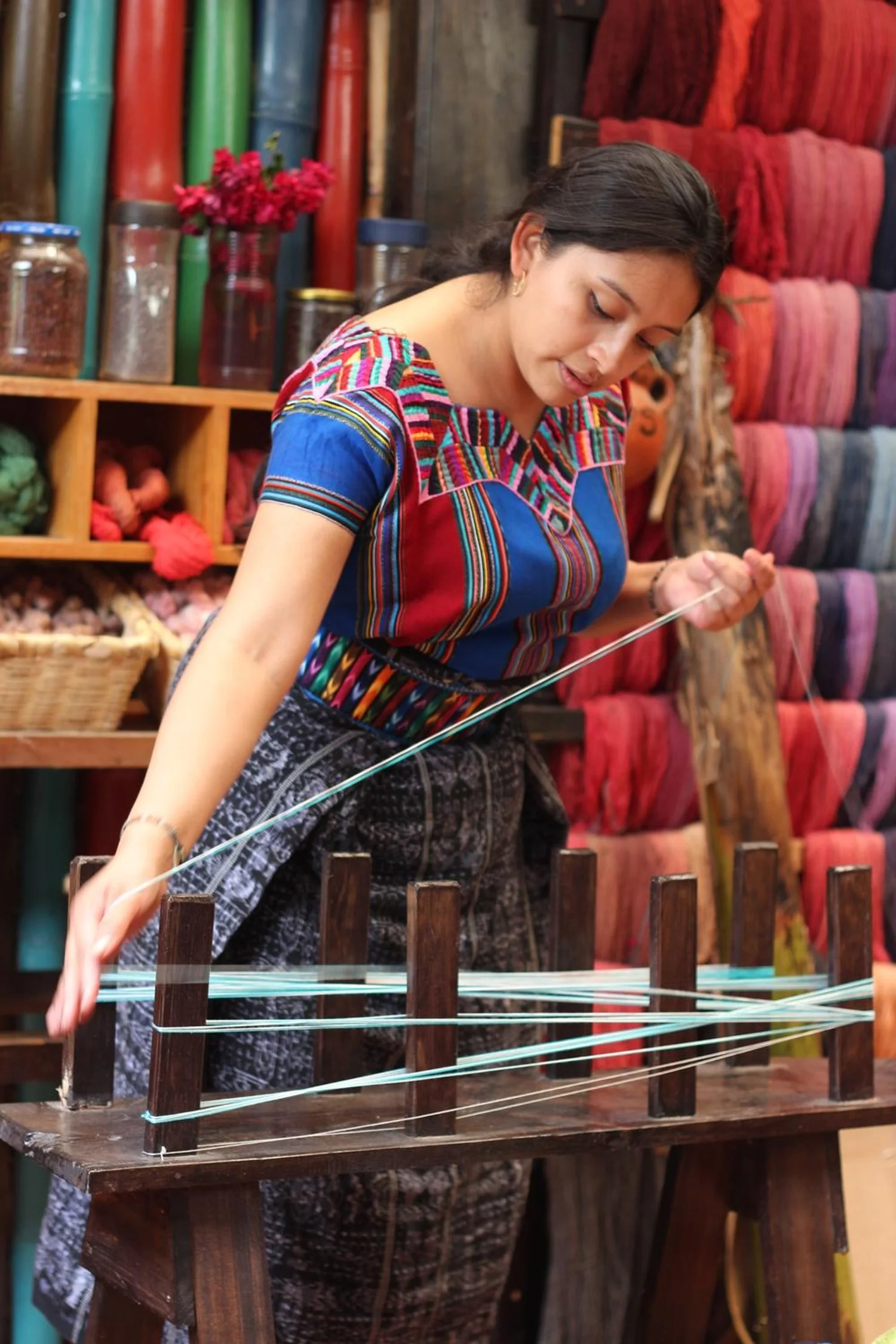 One such studio I visited was Casa Flor Ixaco, where I had the pleasure of experiencing a presentation by Daphne, a local Mayan woman and a key member of the cooperative. Working in this cooperative has not only provided the women with an income, it has also enabled them to continue creating in the traditional manner. By collectivizing their efforts, they are able to create more efficiently, for example by dyeing twice a year in large quantities, rather than repeating the same process multiple times in smaller batches.